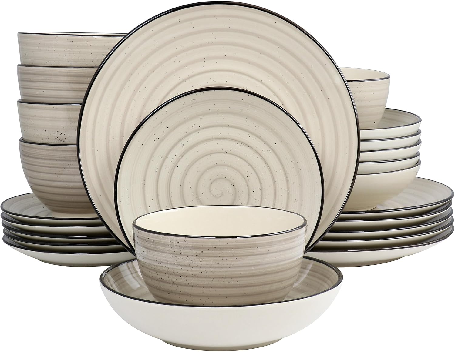 Elama Gia 24 Piece Round Stoneware Dinnerware Set in Cream