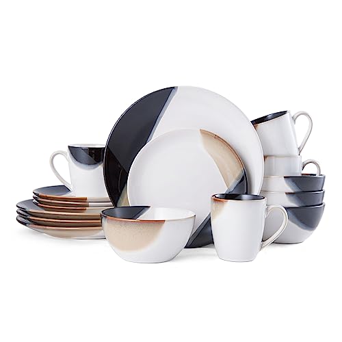 - CONTEMPORARY AND INVITING: Unique black and tan two tone reactive color on product along outside of dinnerware with white glossy center