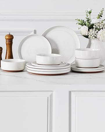 • ¡¾ORC CERAMIC CLAY for SAFETY. DURABILITY & HEAT RETENTION¡¿: Made from high-quality ORC ceramic clay. MALACASA stoneware dish set are lead-free and cadmium-free. ensuring a safe dining experience for your family. This high-density ceramic material has a higher specific heat capacity and lower thermal conductivity. which means it absorbs and retains heat more effectively. keeping your food warm for longer while remaining cool to the touch.