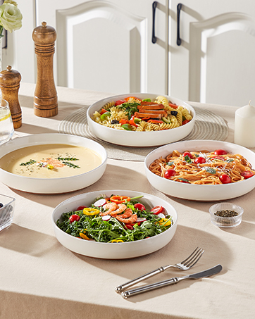 • ¡¾WHAT'S INCLUDED¡¿: This 12 piece plate set features 4 x 10.25 dinner plates. 4 x 8.25 salad plates. and 4 x 26 oz cereal bowls¡ªeverything you need for a service for 4.